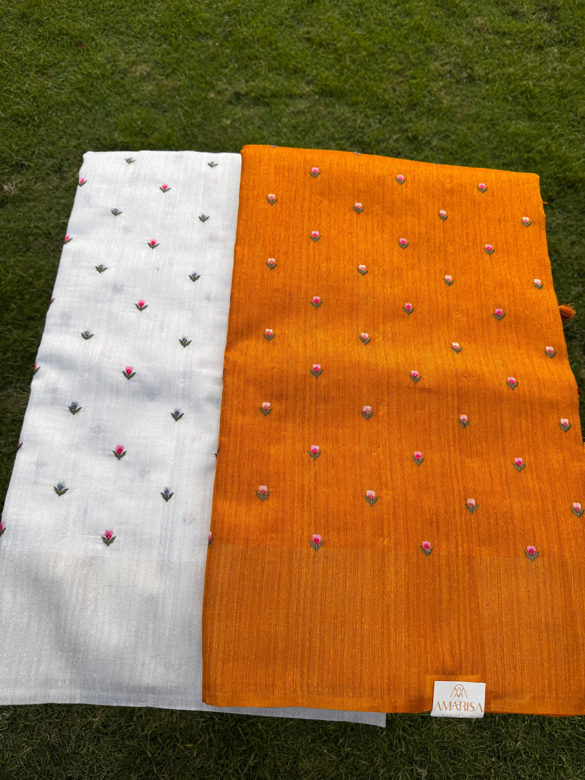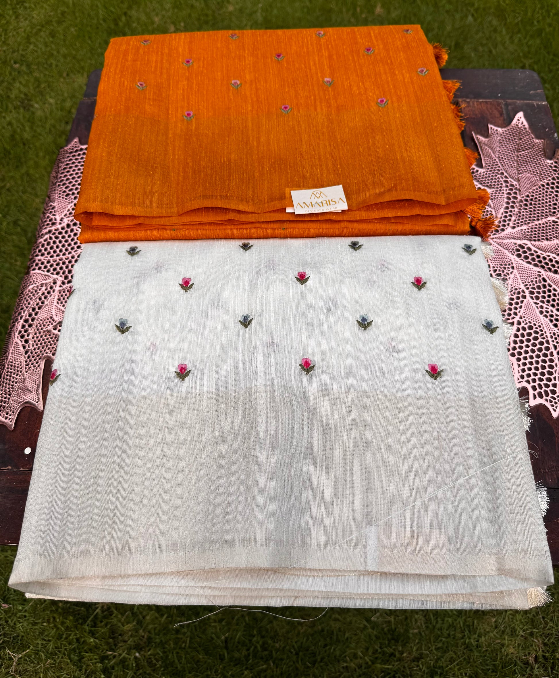 🌸 Semi-jute Saree with Delicate Rose-Bud Embroidery