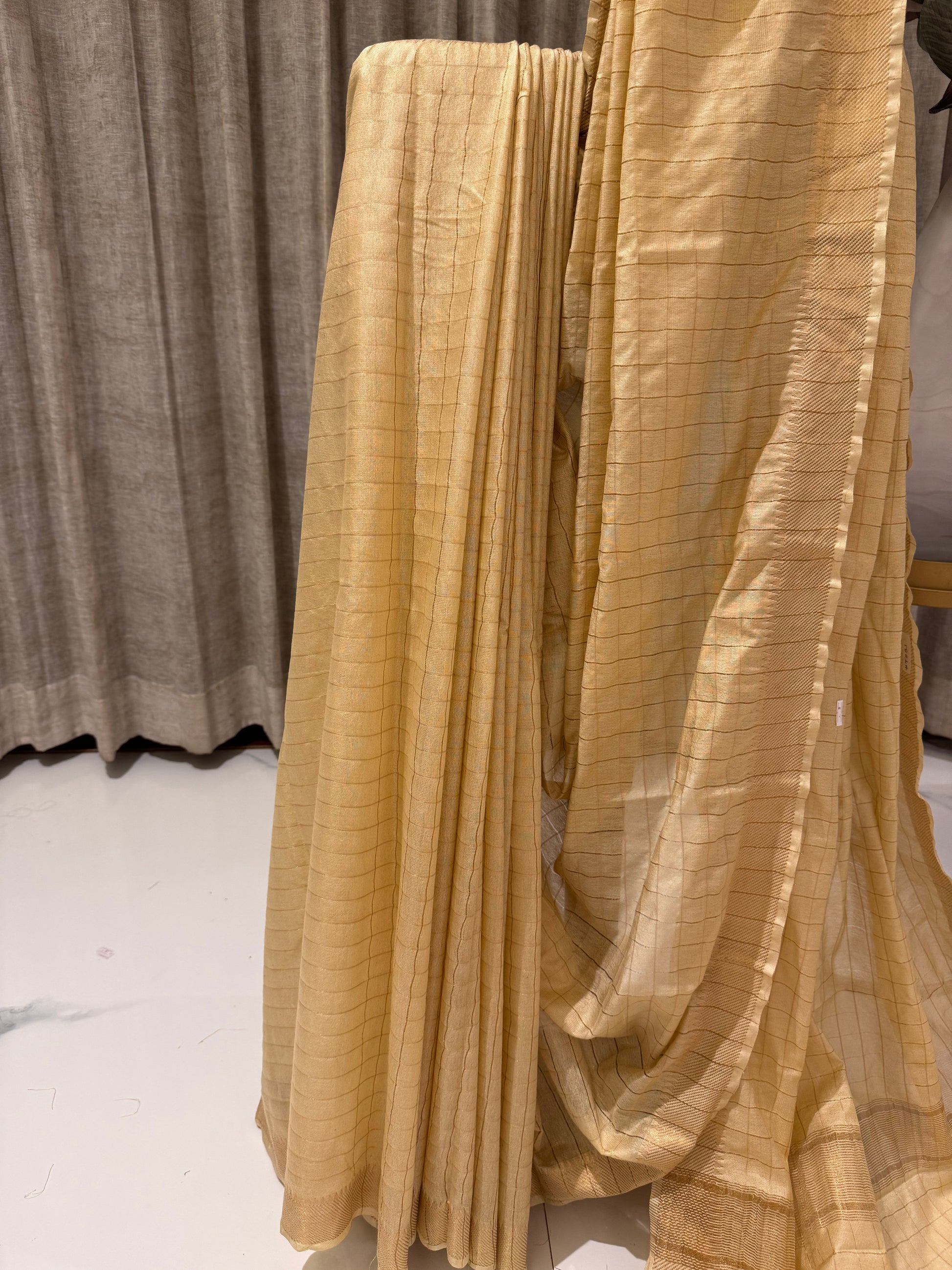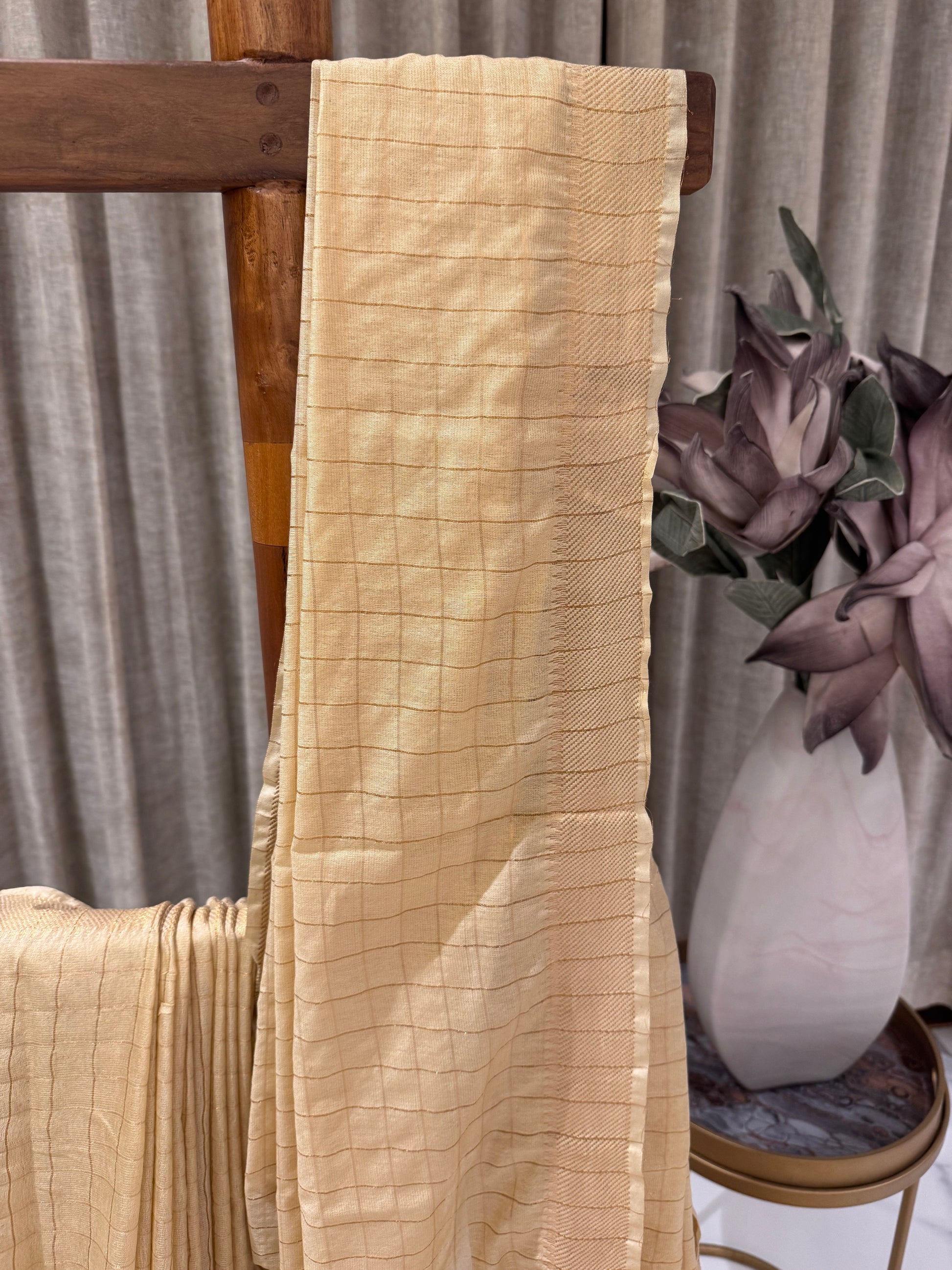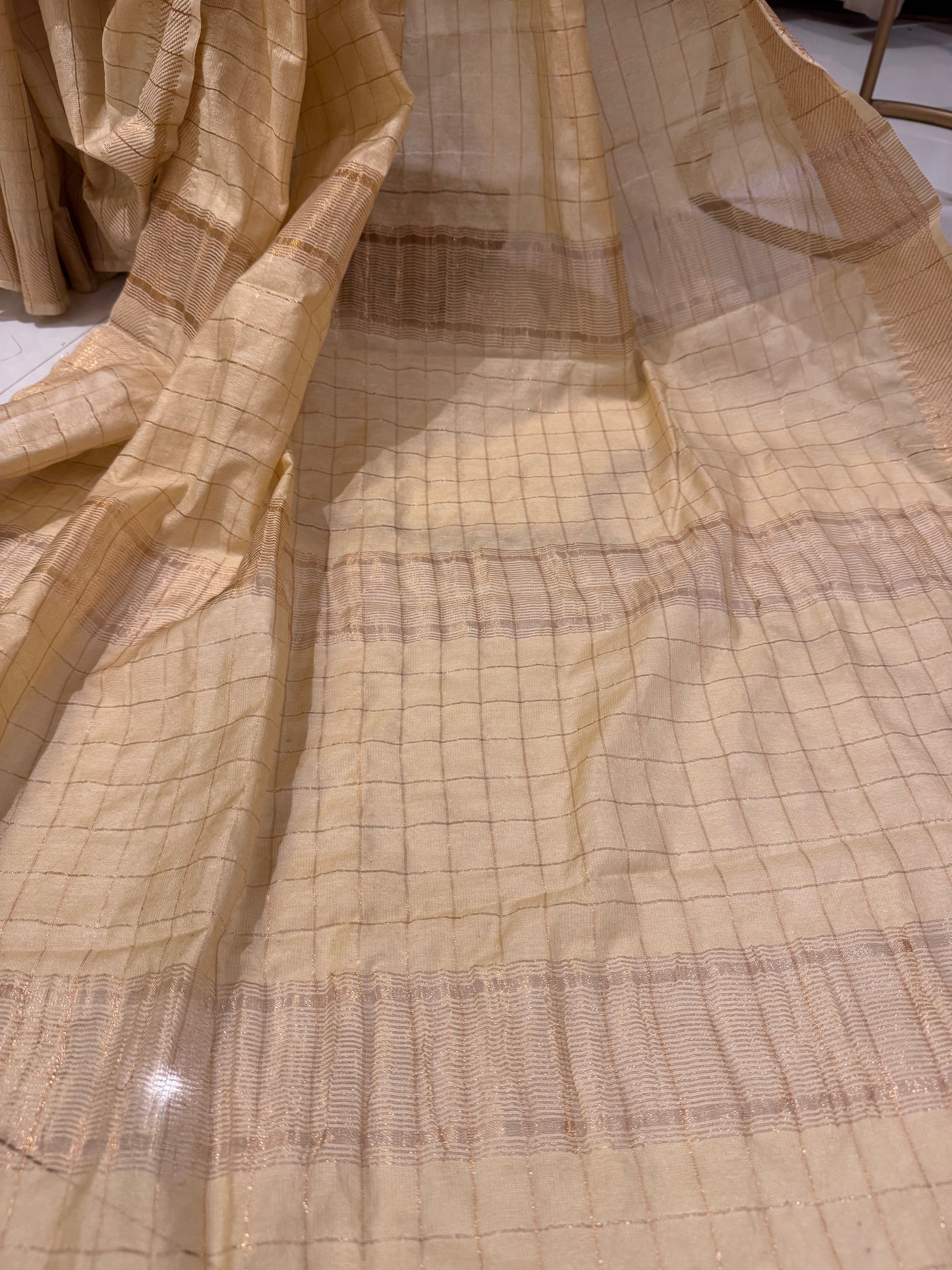 Color: Cream with Golden Zari Checks