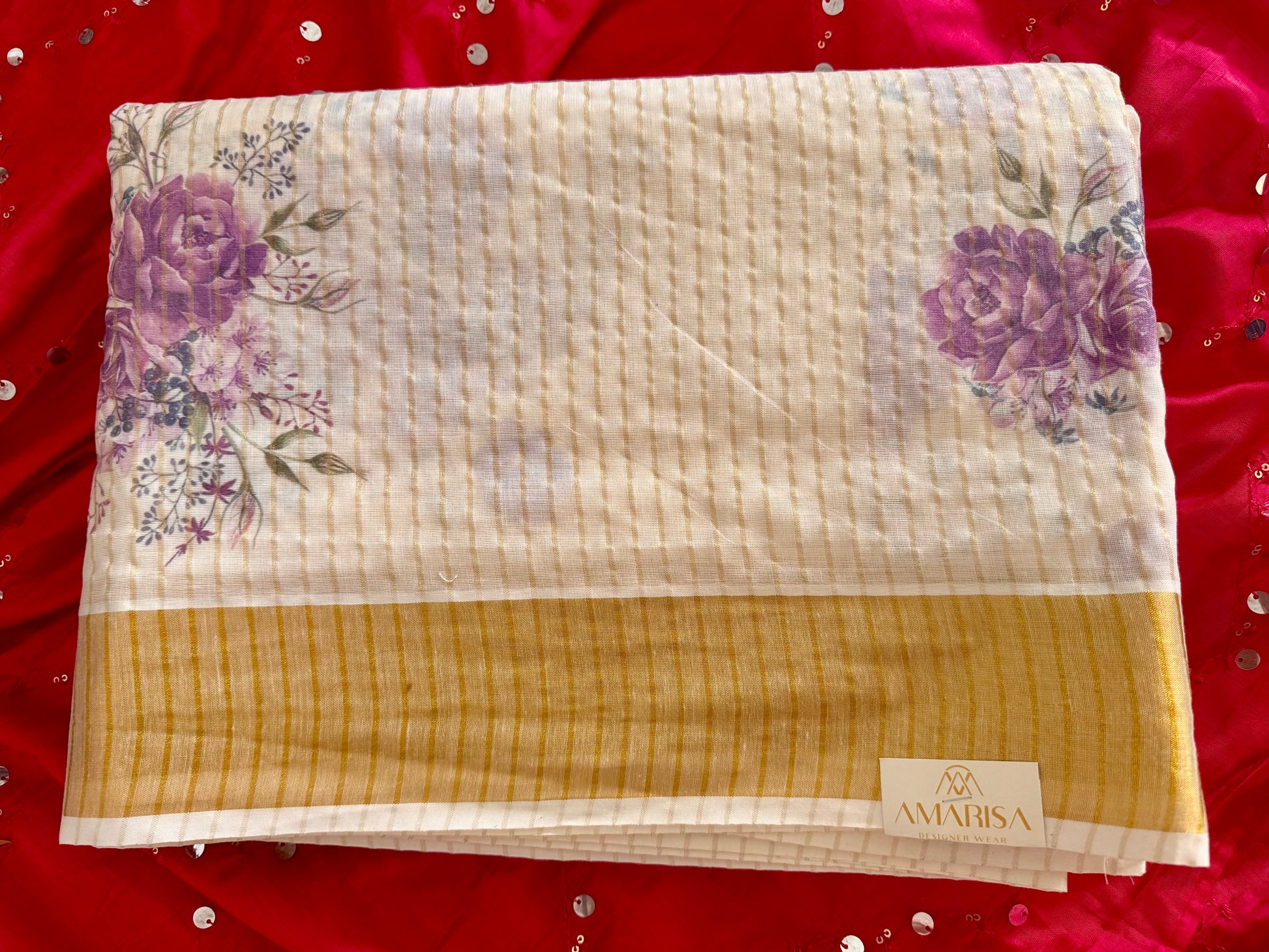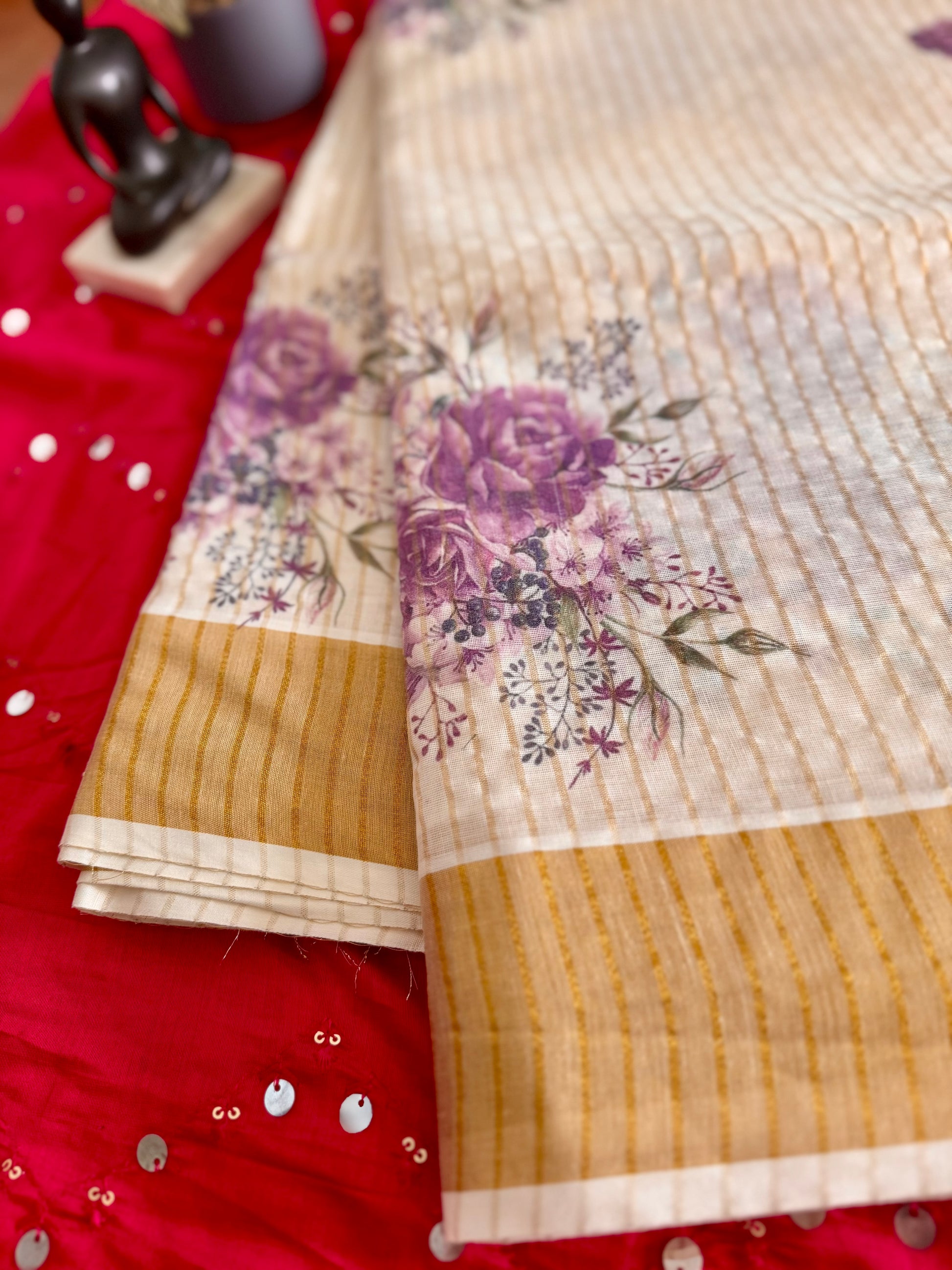 Color: Off-white with golden zari weave