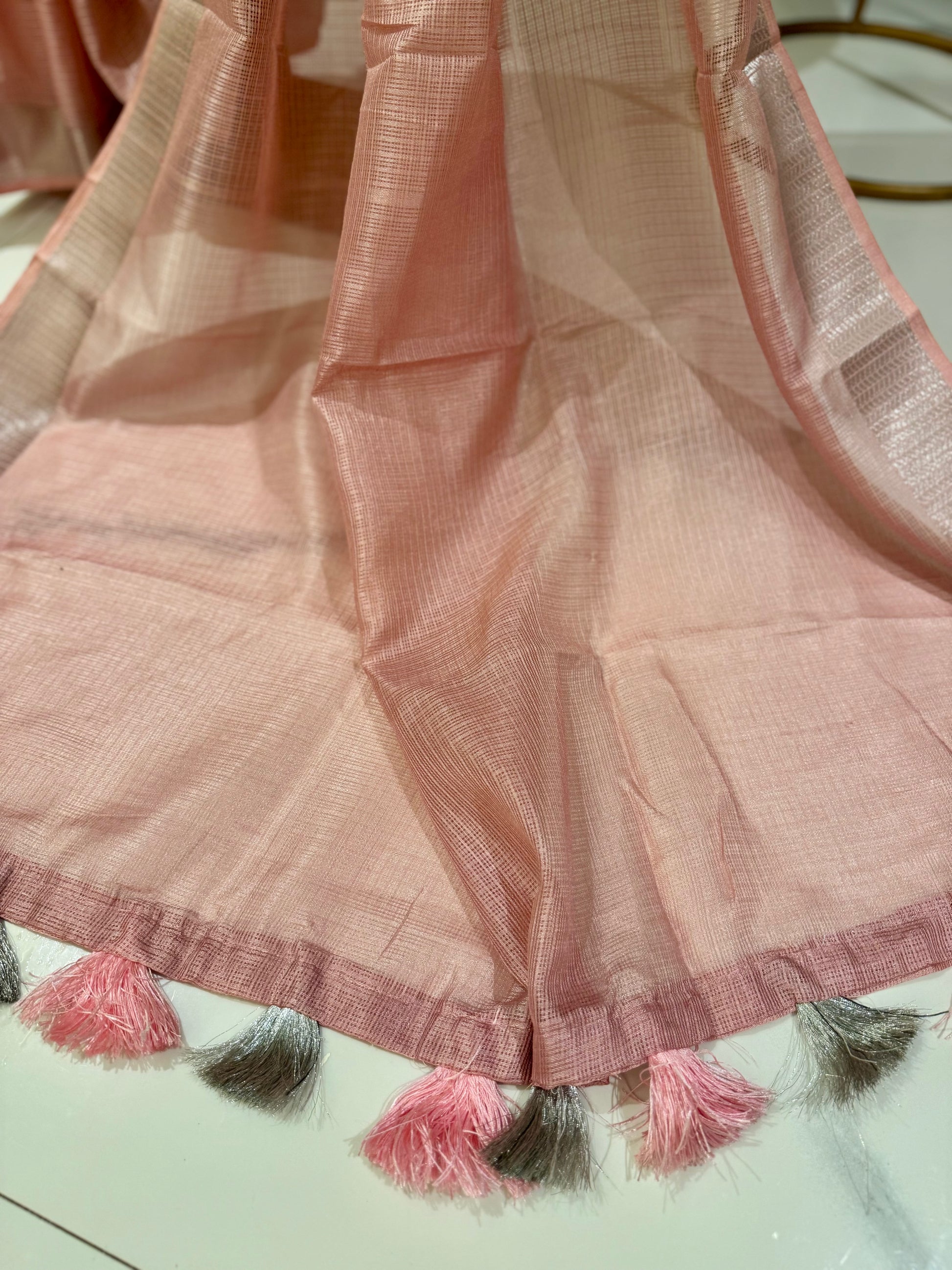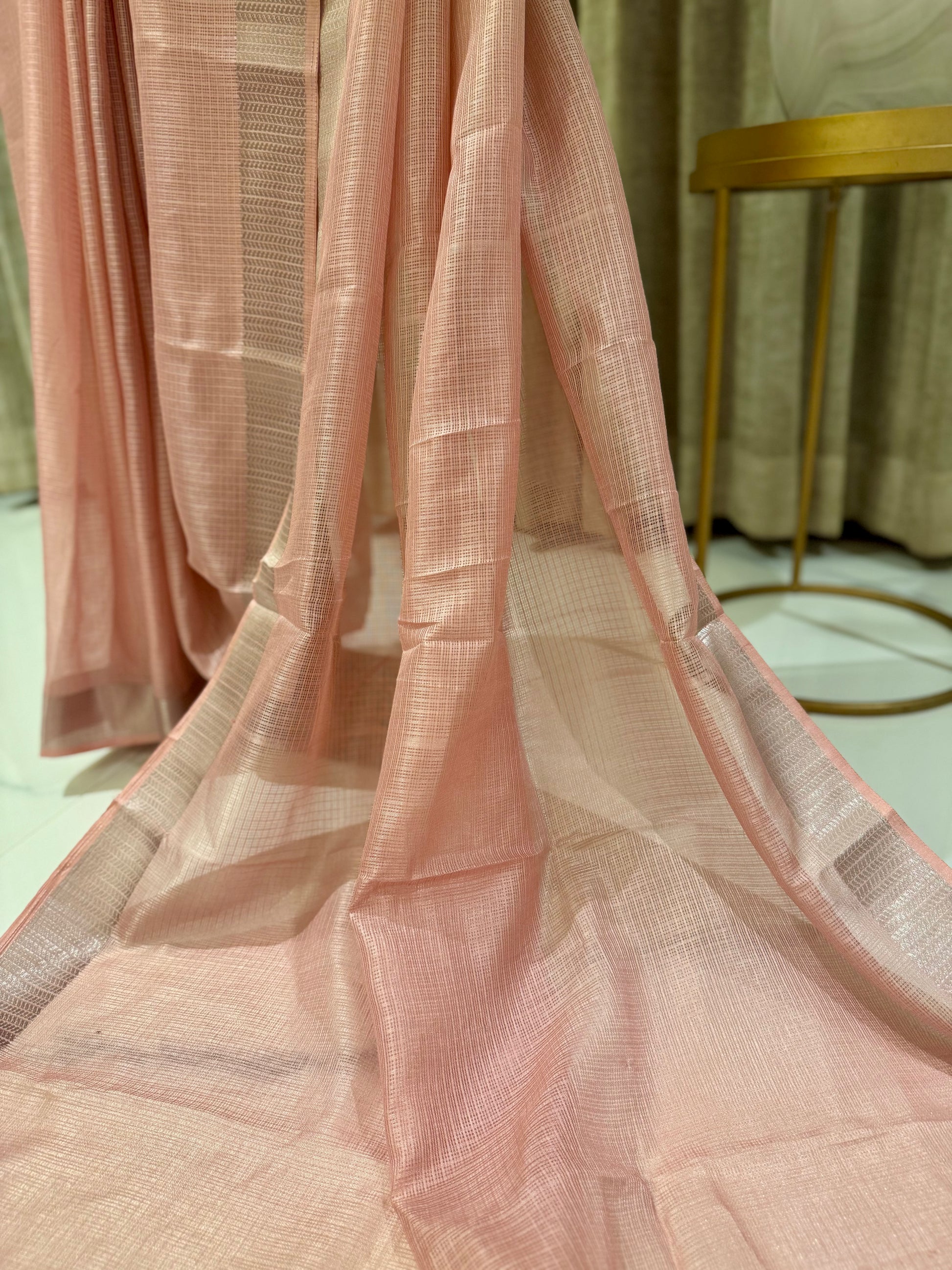 Enhance your ethnic style with this timeless Kotta saree, available in two soft and soothing shades – pastel green and peach. Crafted from lightweight, breathable fabric, this saree offers a graceful drape and all-day comfort. The highlight of the design is its delicately woven zari border, which adds a refined touch of tradition and elegance. Ideal for festive gatherings, casual celebrations, and day functions, this saree is a beautiful blend of simplicity and sophistication.