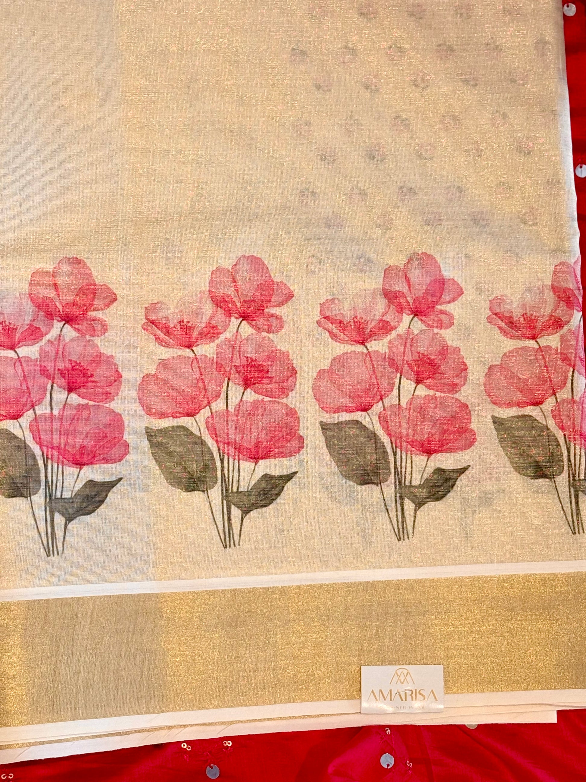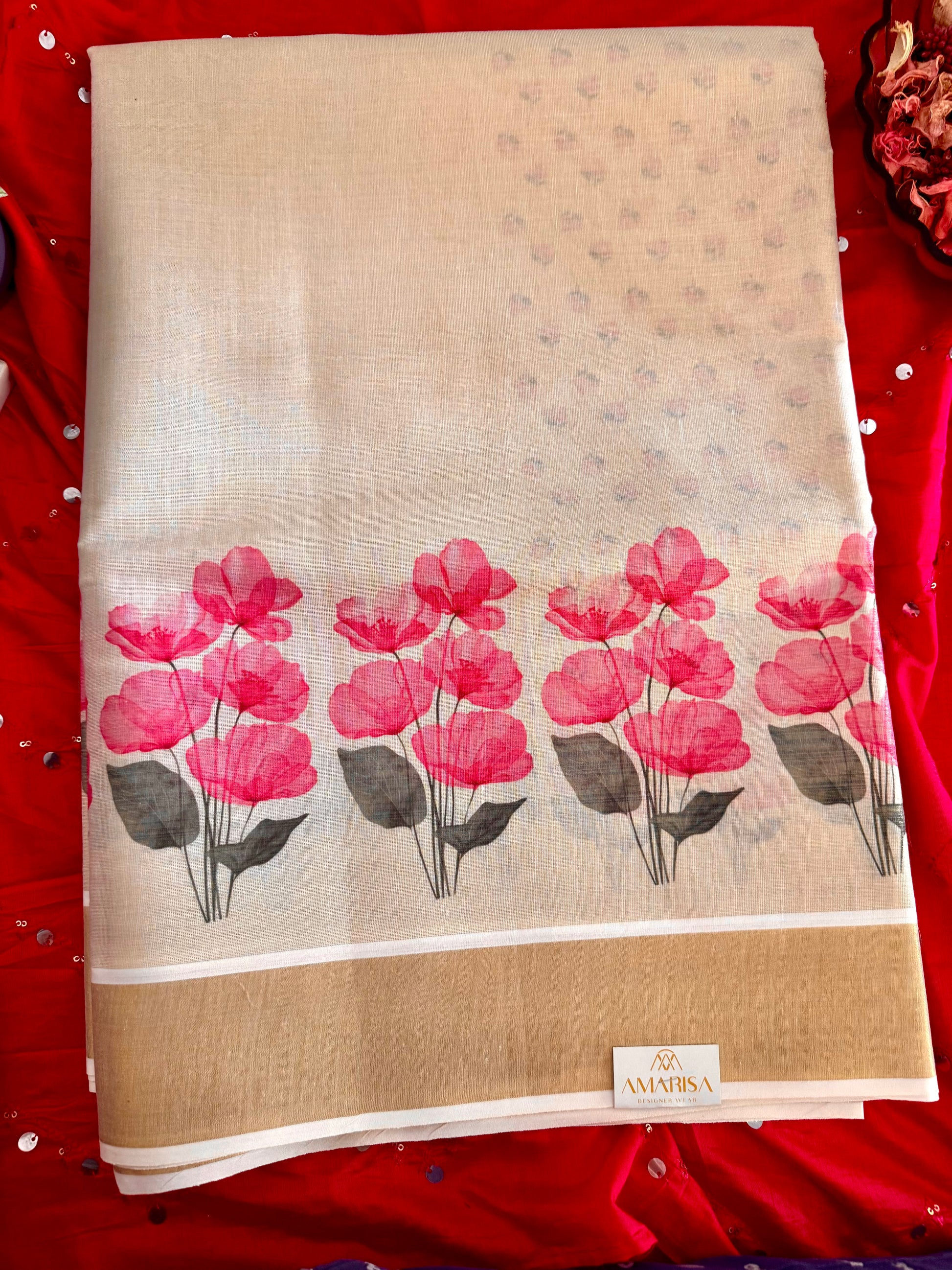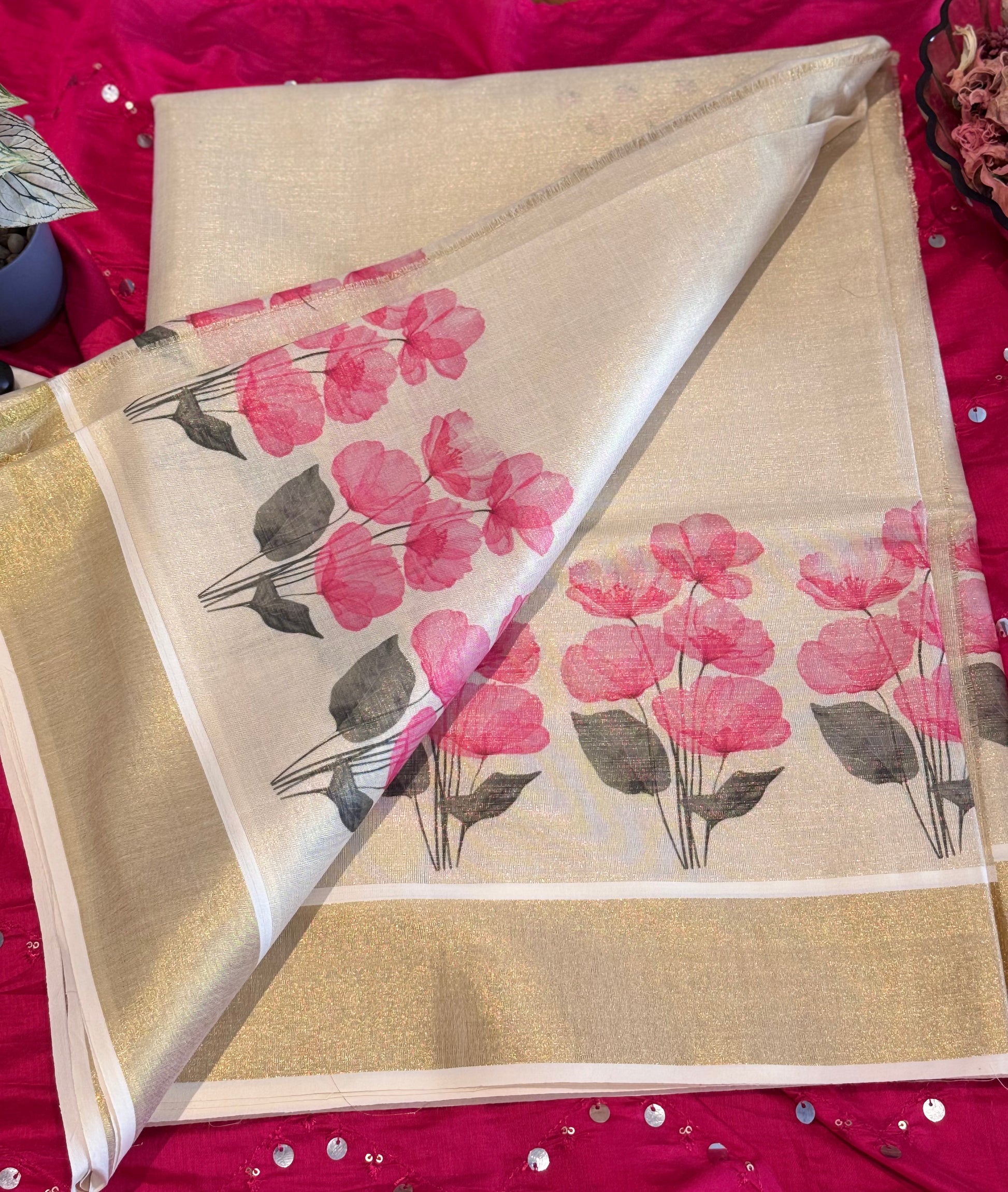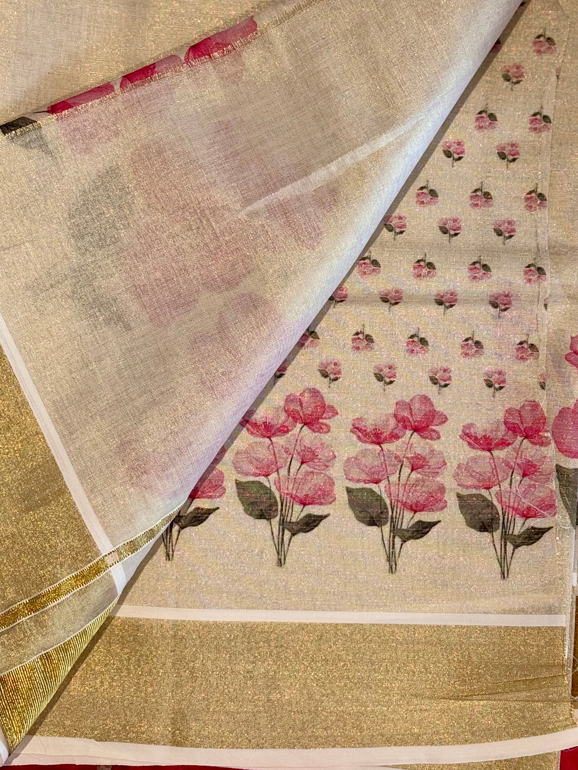 Elegant Tissue Kerala Cotton Saree with Floral Blouse