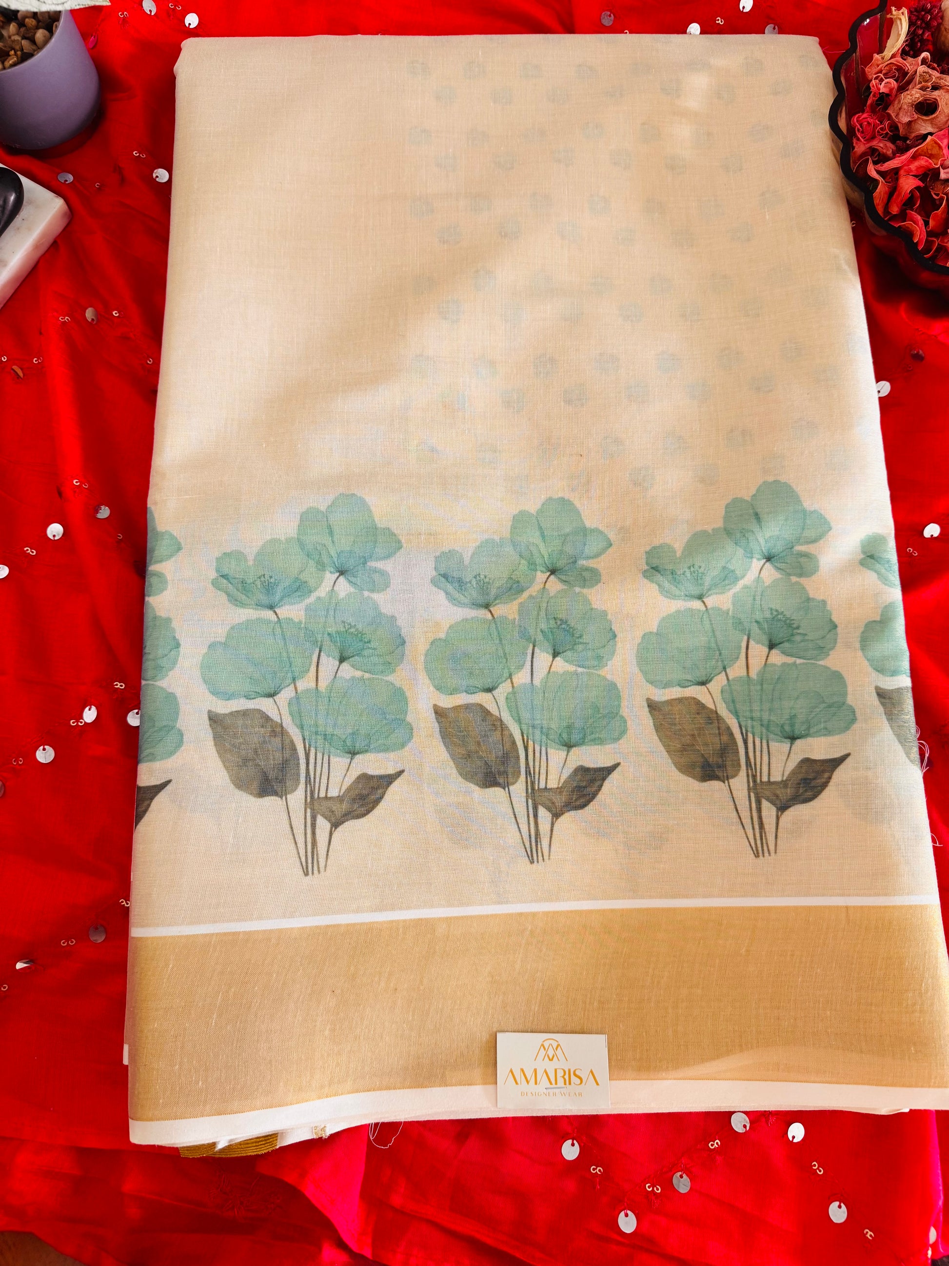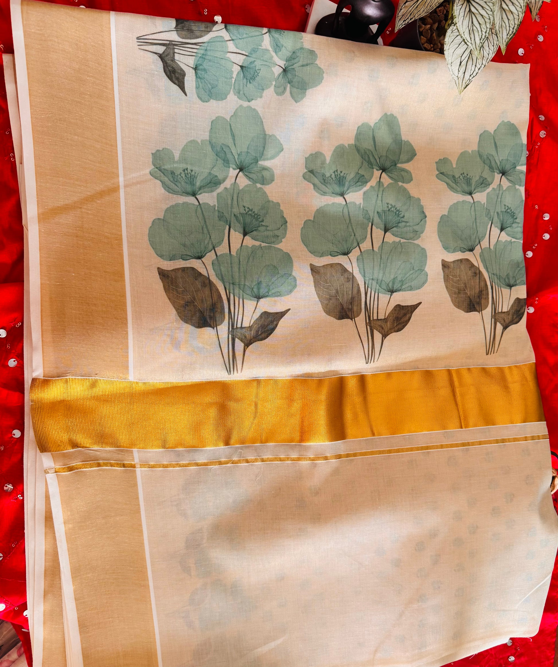 Elegant Tissue Kerala Cotton Saree with Floral Blouse