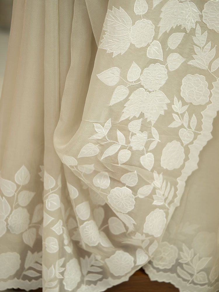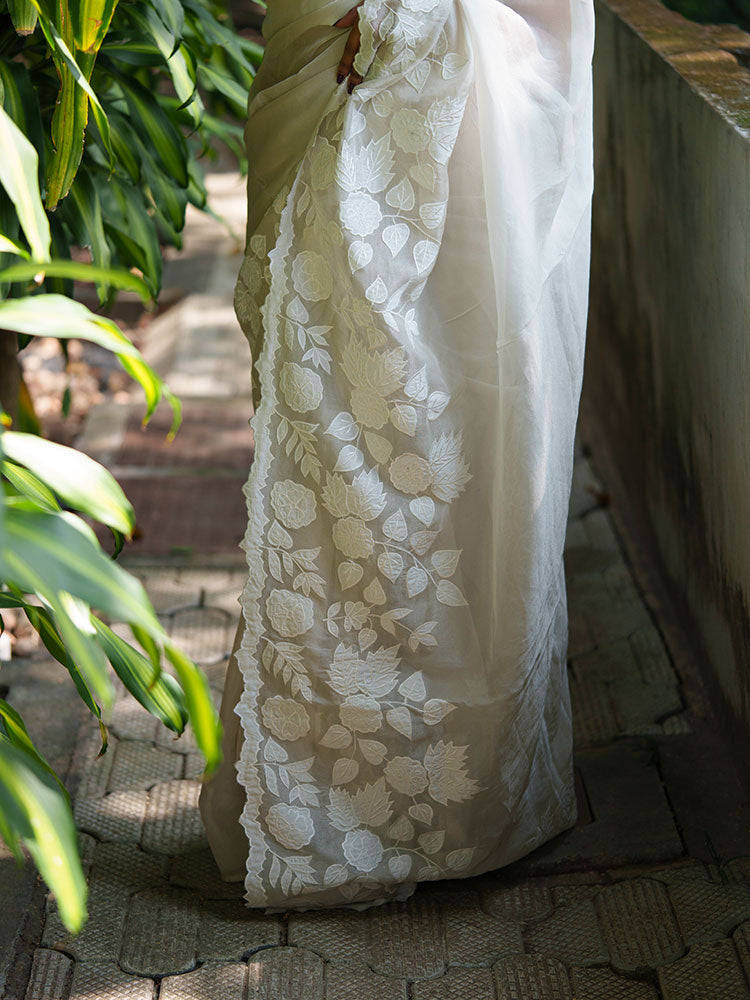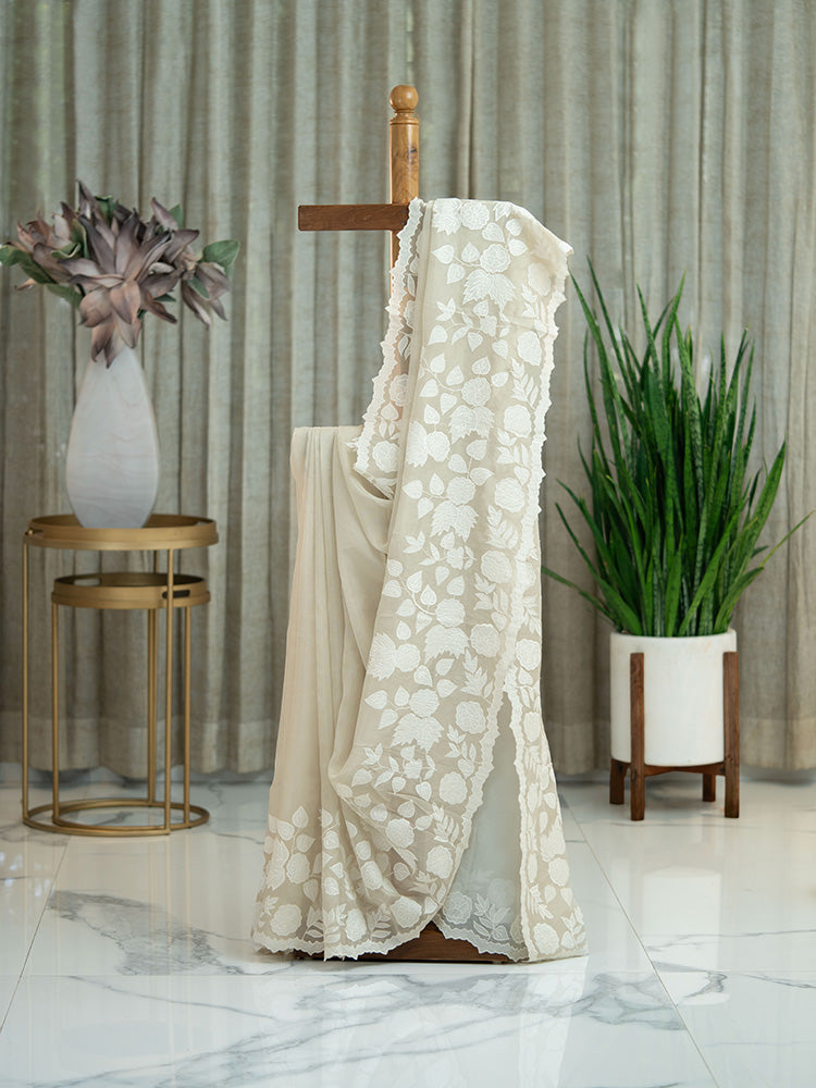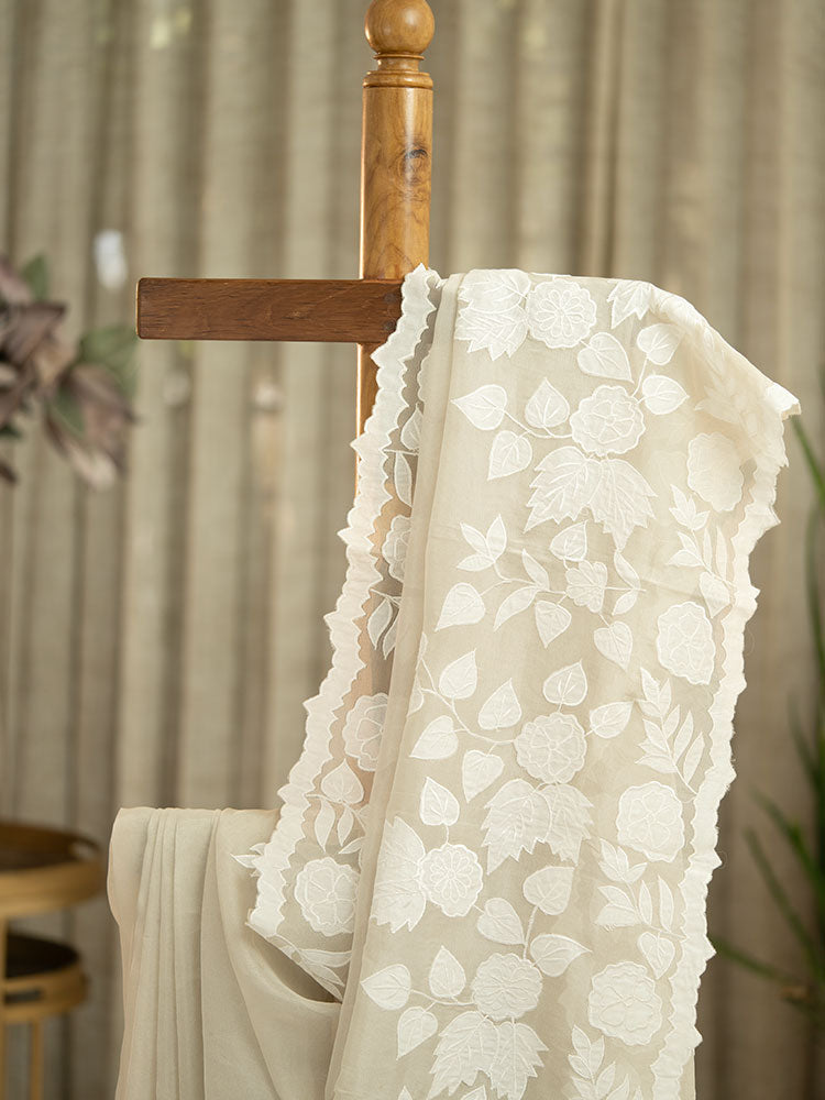 Georgette Tissue Saree in Off-White with White Appliqué Work