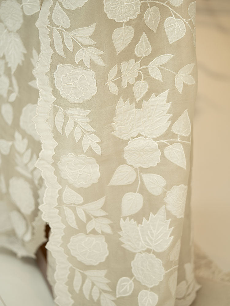 Intricate Appliqué Work: Adds texture and sophistication to the design.