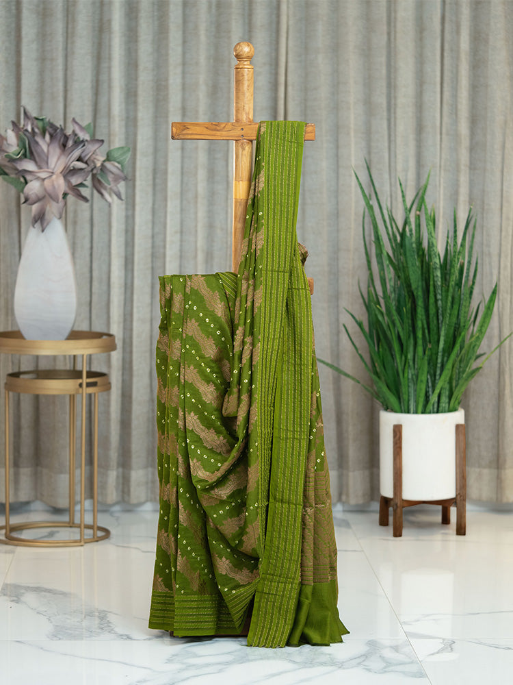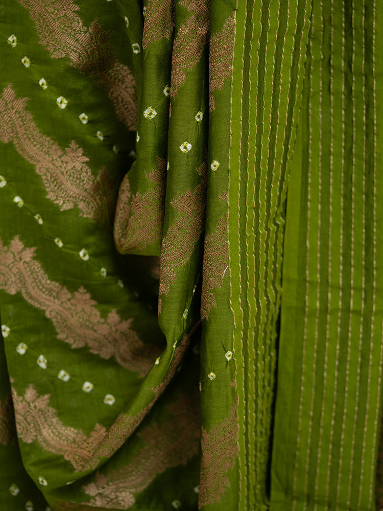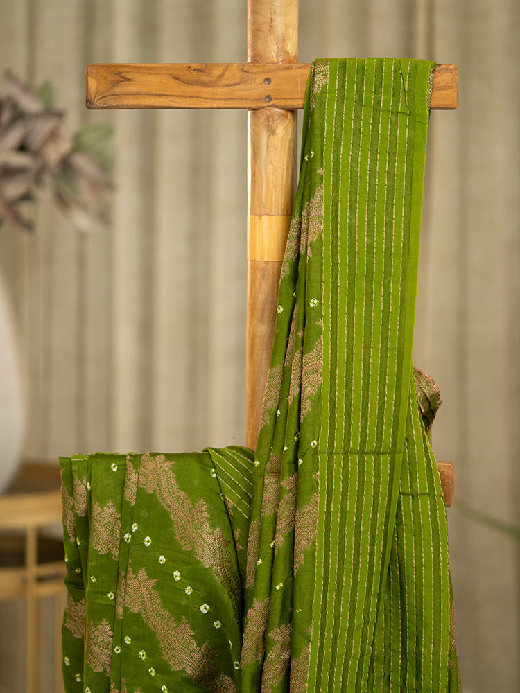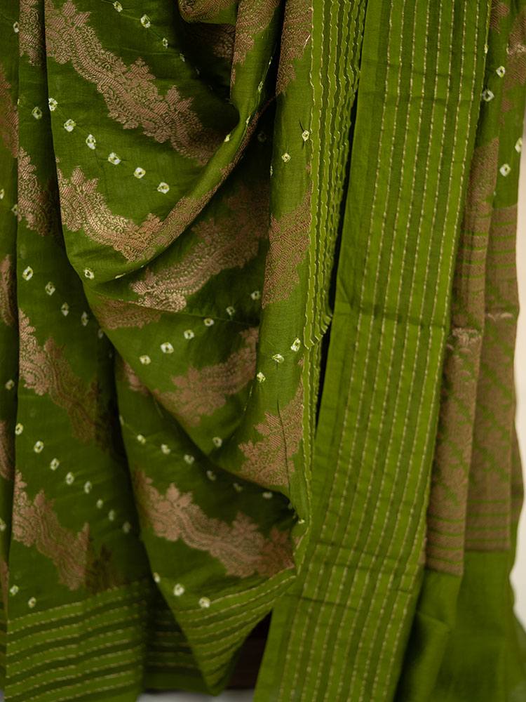 Color: Green with intricate Bandhani and Shibori work.