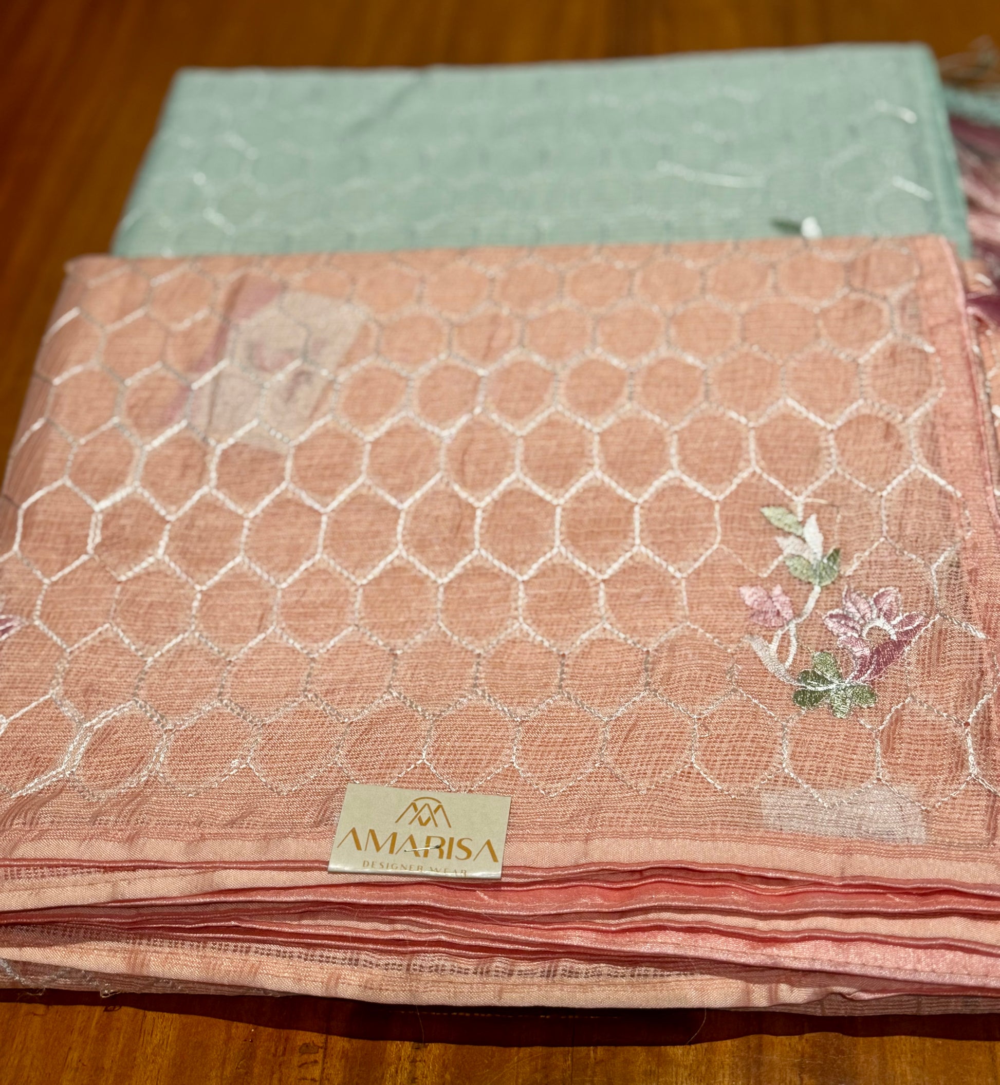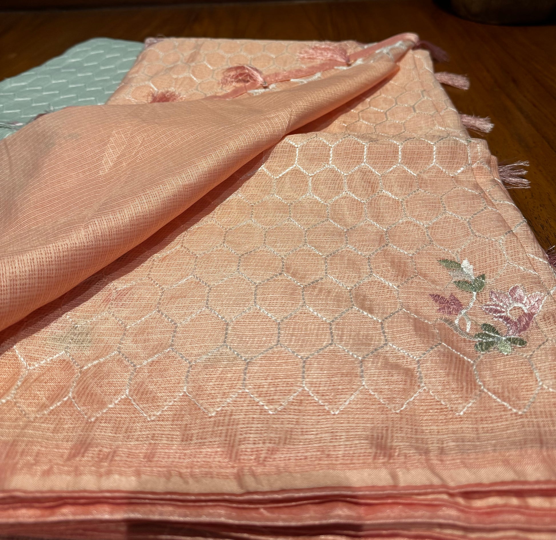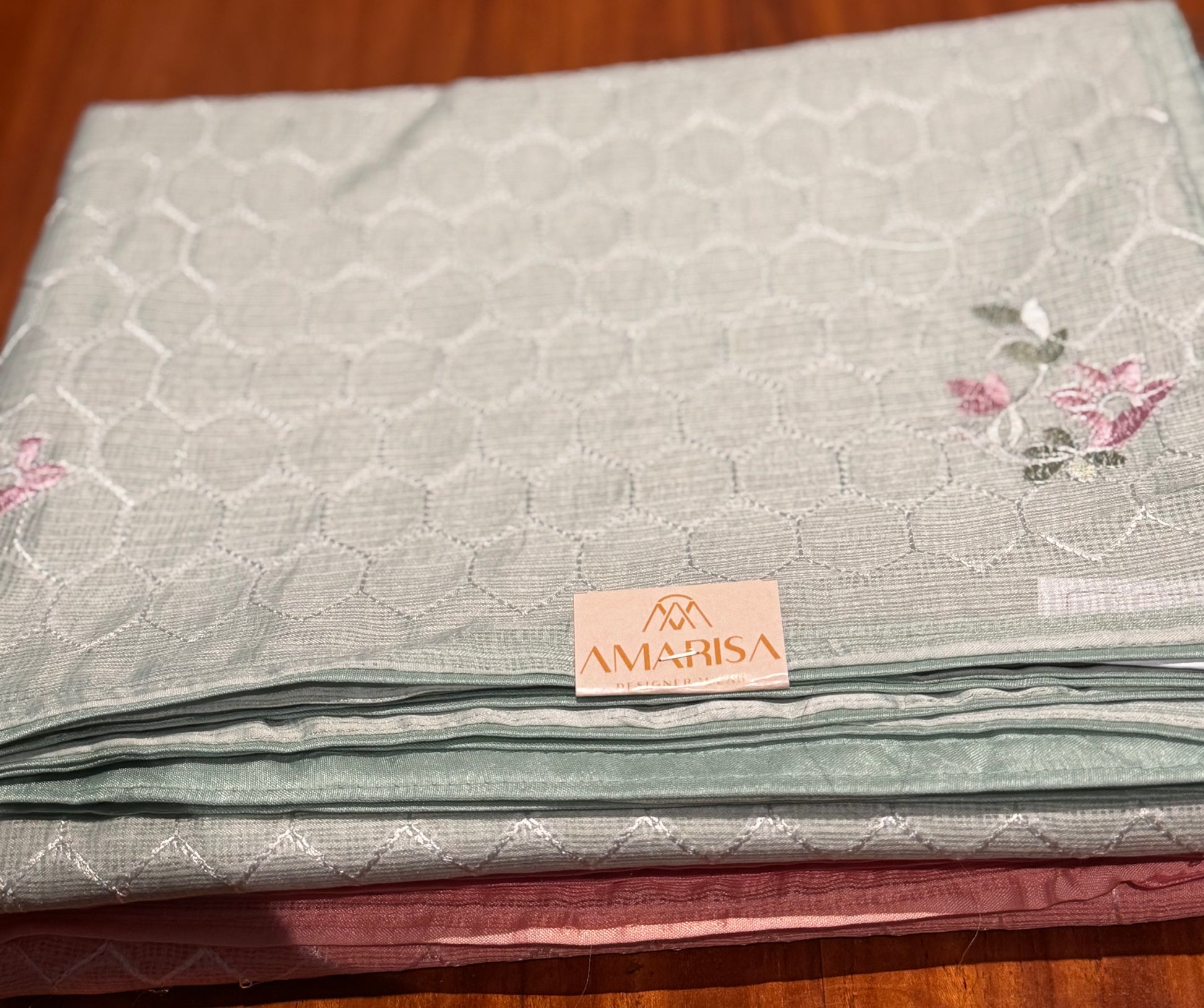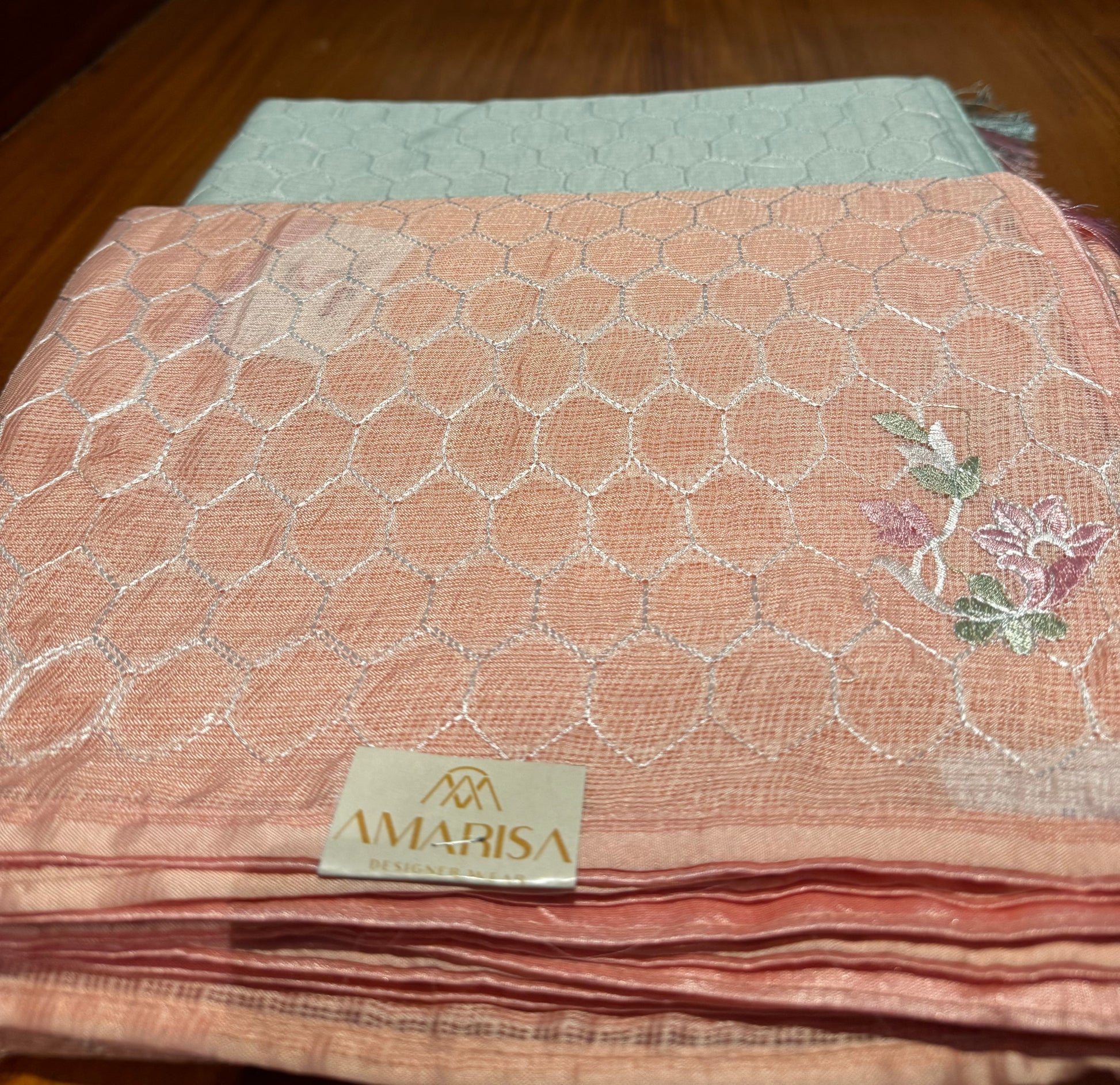 - Minimal floral embroidery on the pallu and body — dainty, graceful and feminine