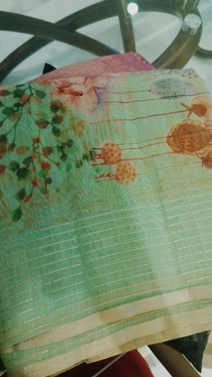 • Border: Subtle gold zari edge