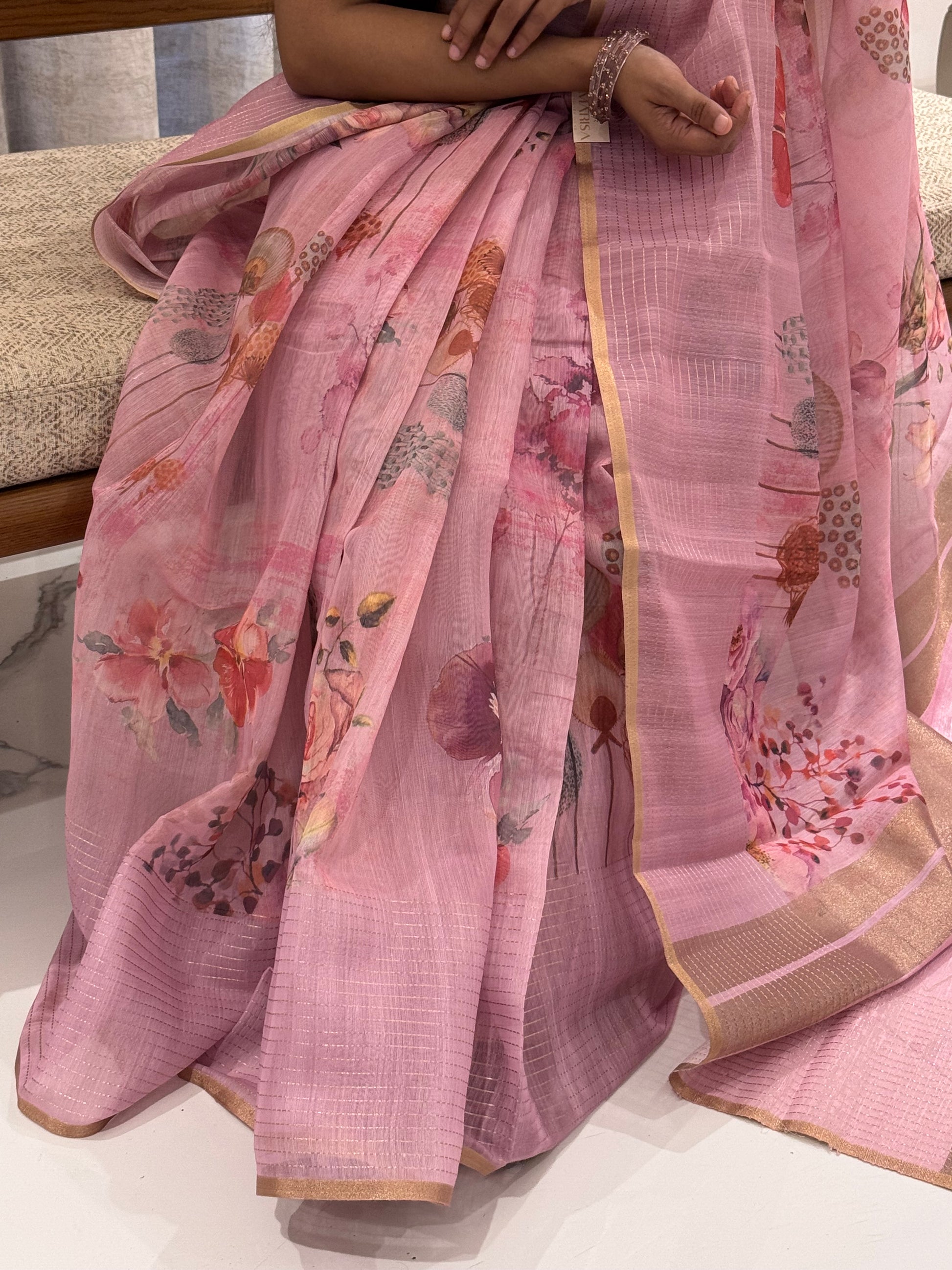 Linen Silk Saree with Floral Elegance