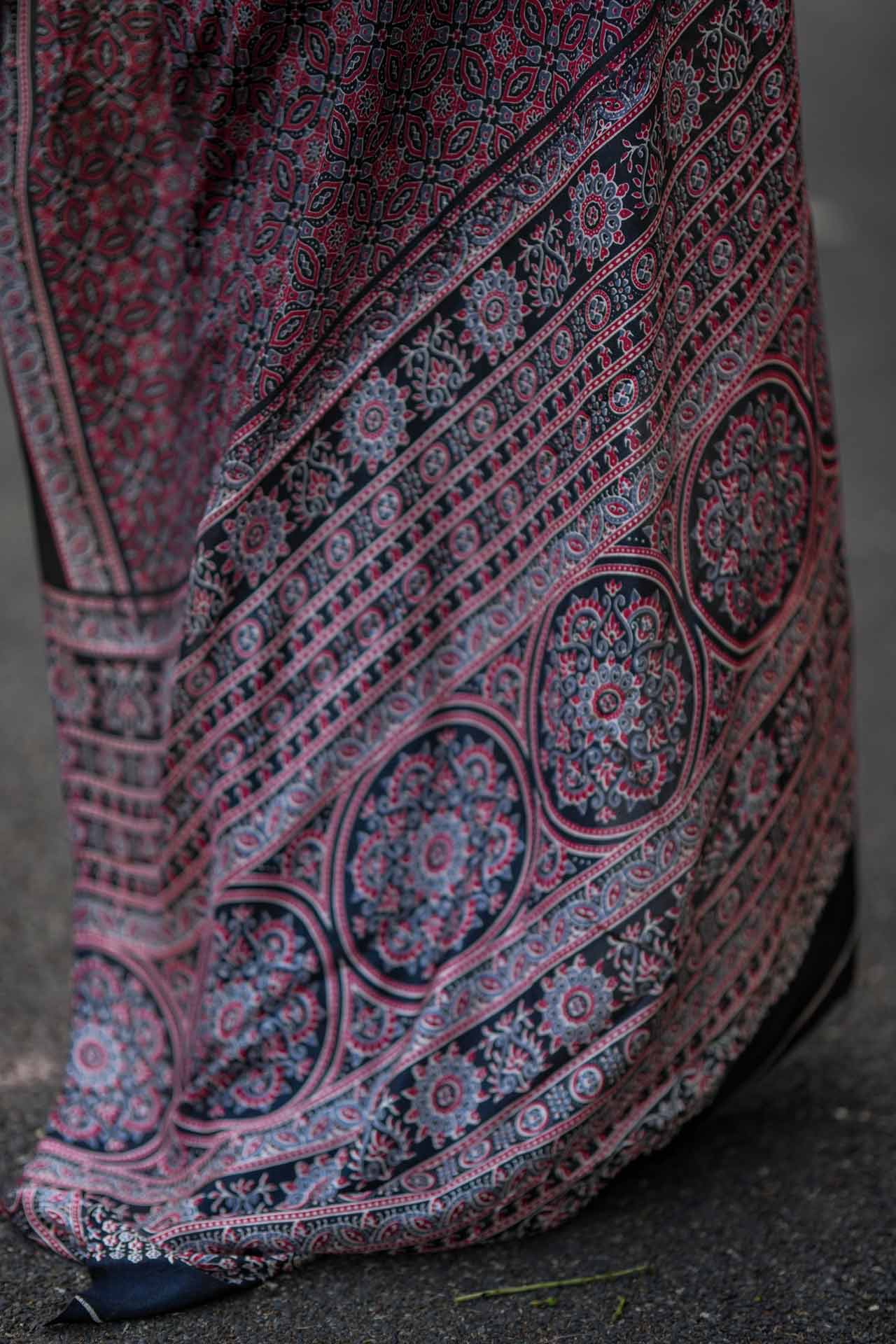 - Dry clean recommended to maintain the fabric’s texture and Ajrak print.