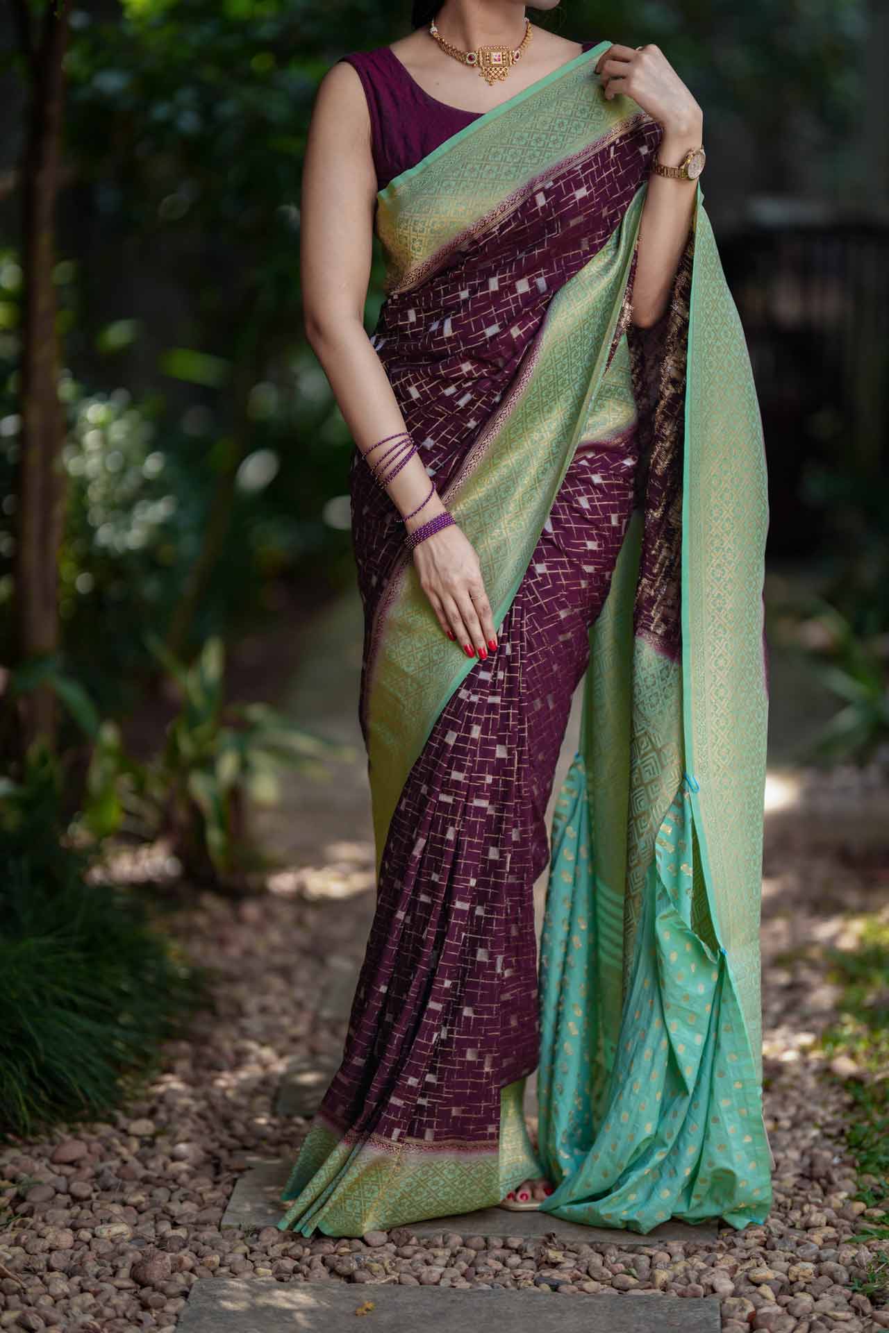 - Geometrical Banarasi Work: A unique fusion of contemporary geometric patterns and traditional Banarasi craftsmanship.