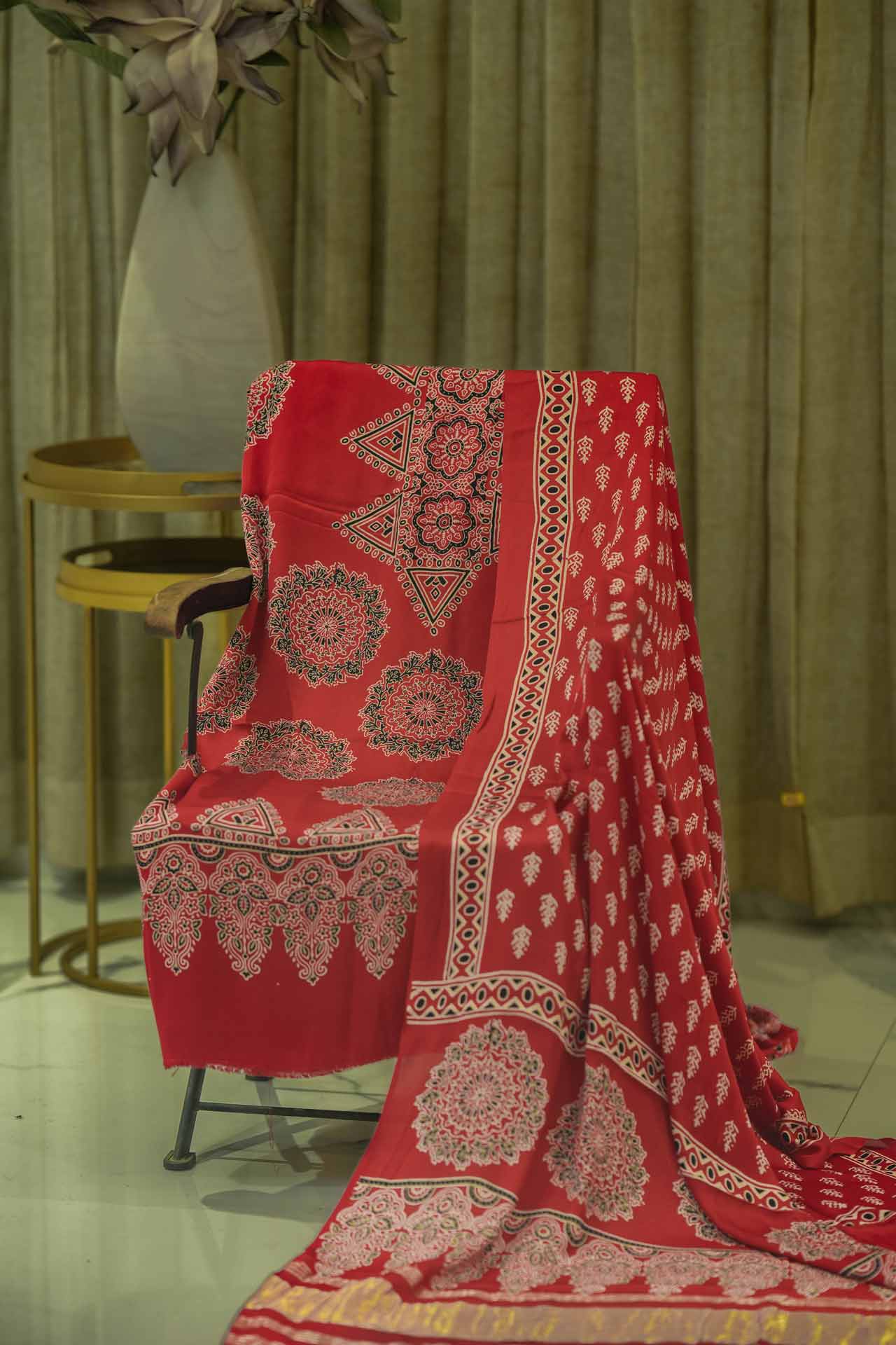 - Print: Authentic Ajrak motifs, featuring traditional patterns that add a touch of heritage.