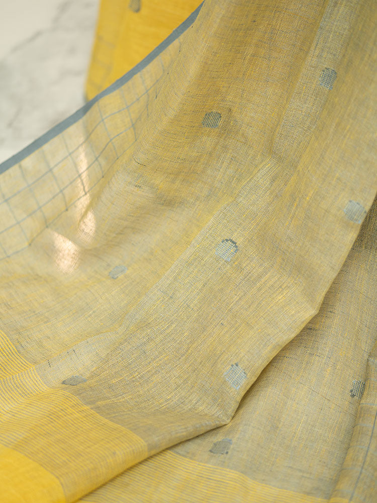 Step into timeless elegance with our Pure Linen Cotton Saree, featuring khadi weaving all over the saree in two beautiful shades. This saree offers a perfect blend of tradition and sophistication, ideal for any occasion.