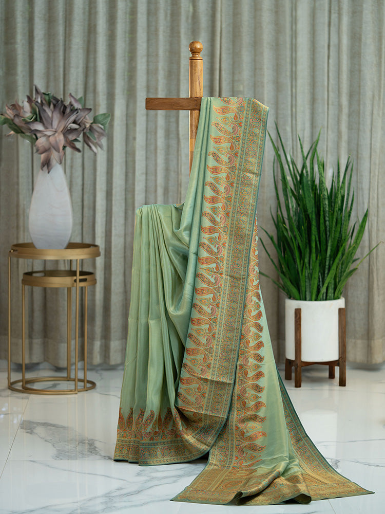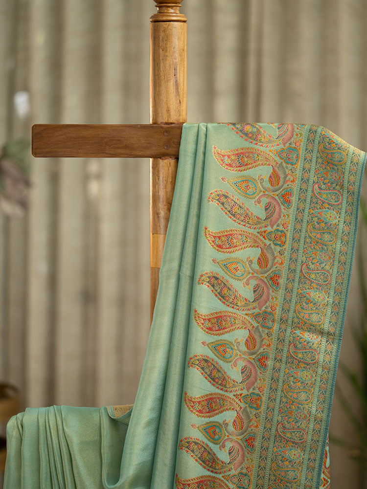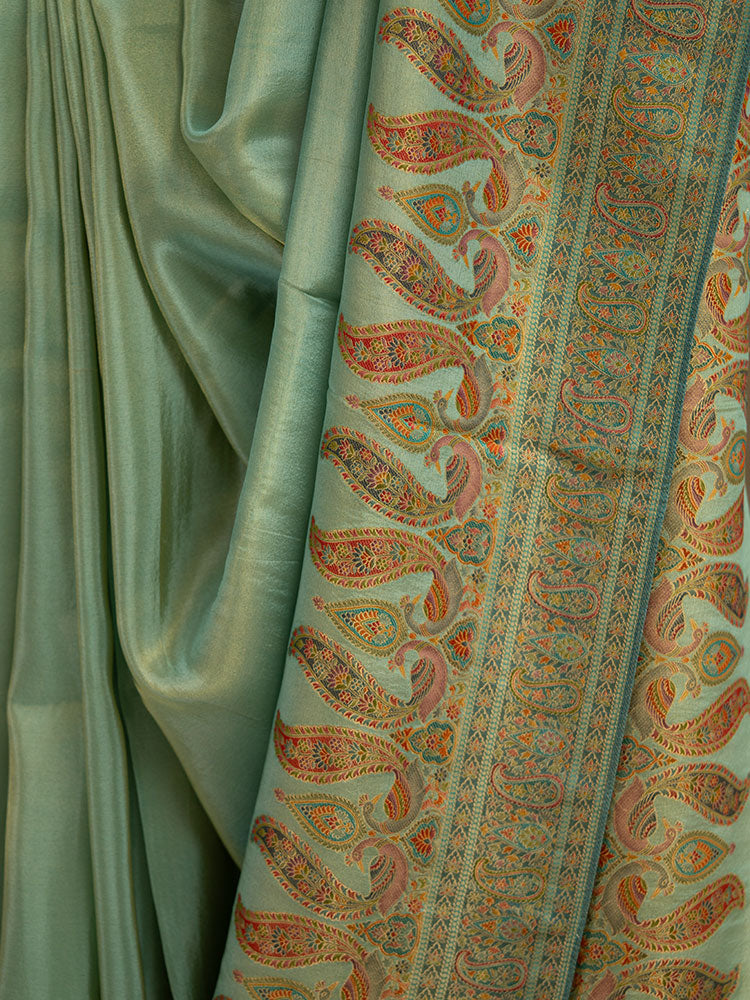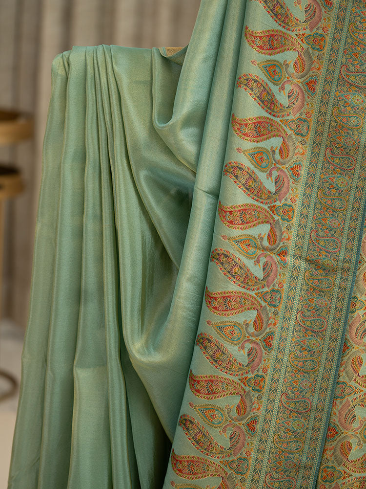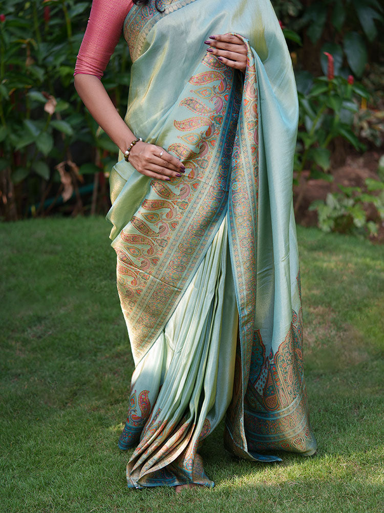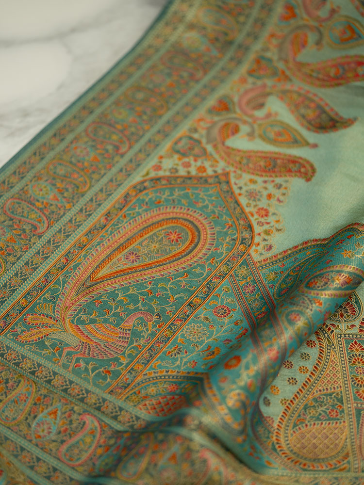 Pure Tissue Silk Saree in Blue with Pashmina Work Border and Pallu