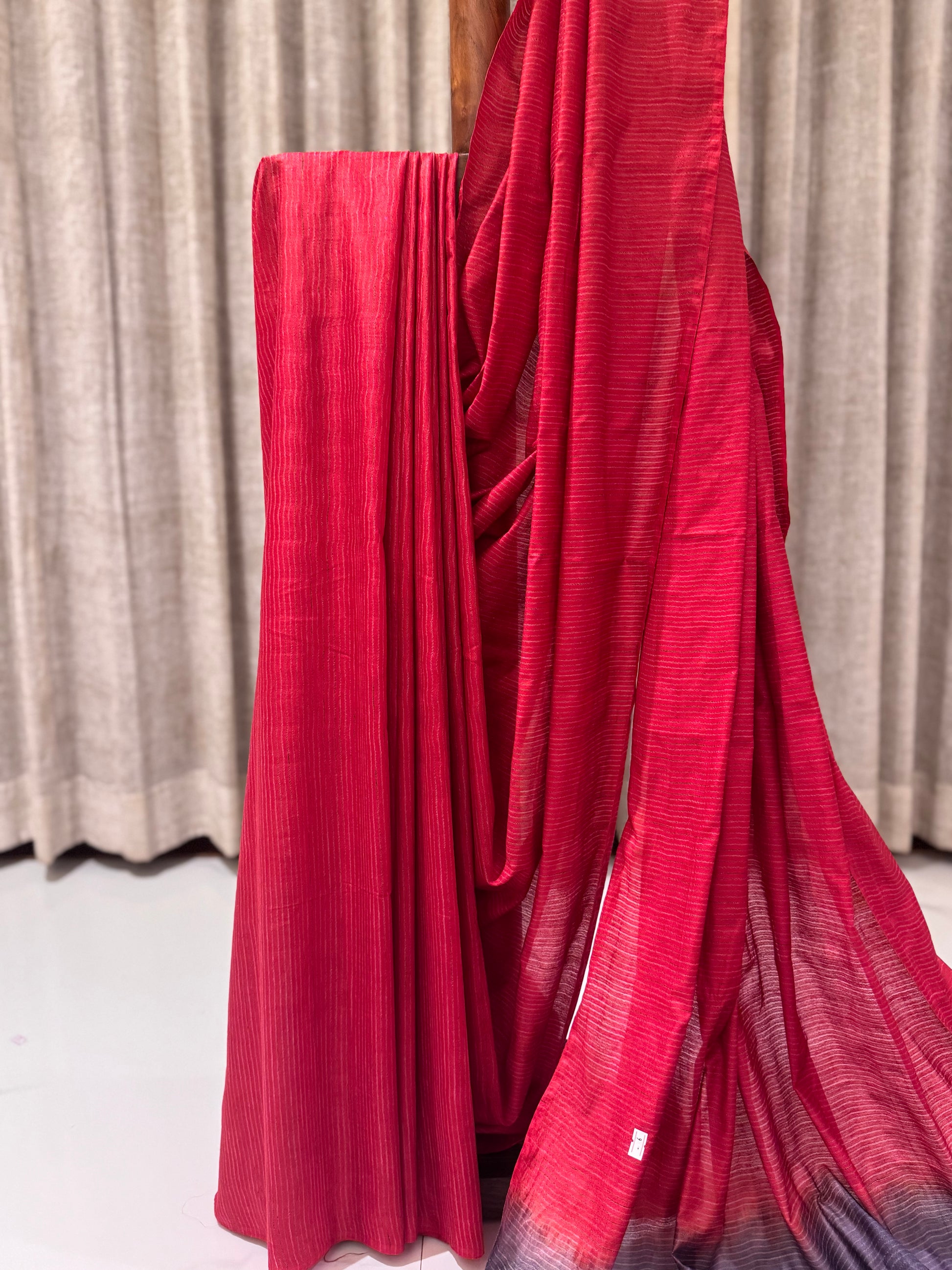 Elevate your ethnic wardrobe with this exquisite Semi Tussar Saree in a rich red shade, perfectly blended with a touch of tradition and modern charm. Crafted from premium semi tussar fabric, this saree offers a graceful drape with a subtle sheen, making it ideal for both festive and formal occasions.