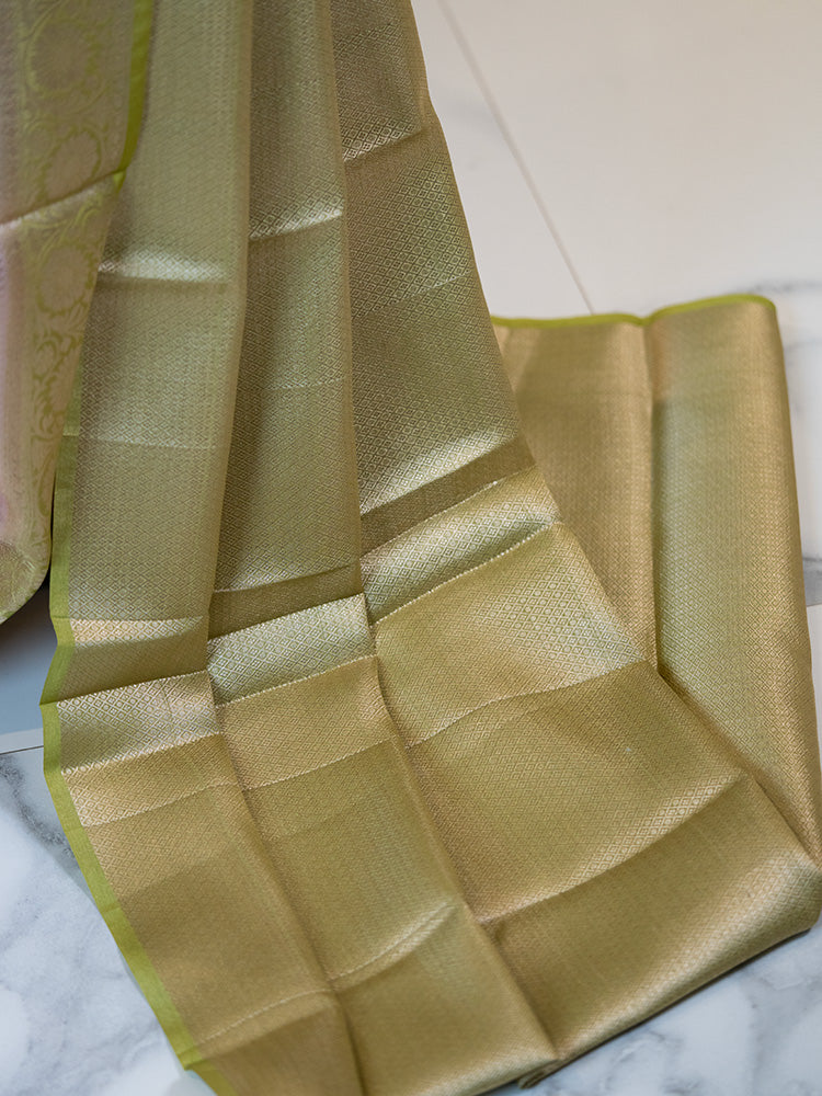 Order Now to Redefine Your Style! Upgrade your ethnic wardrobe with the Tissue Silk Saree in Pink with Digital Floral Print and Green Border. Shop now and step into elegance with every drape!