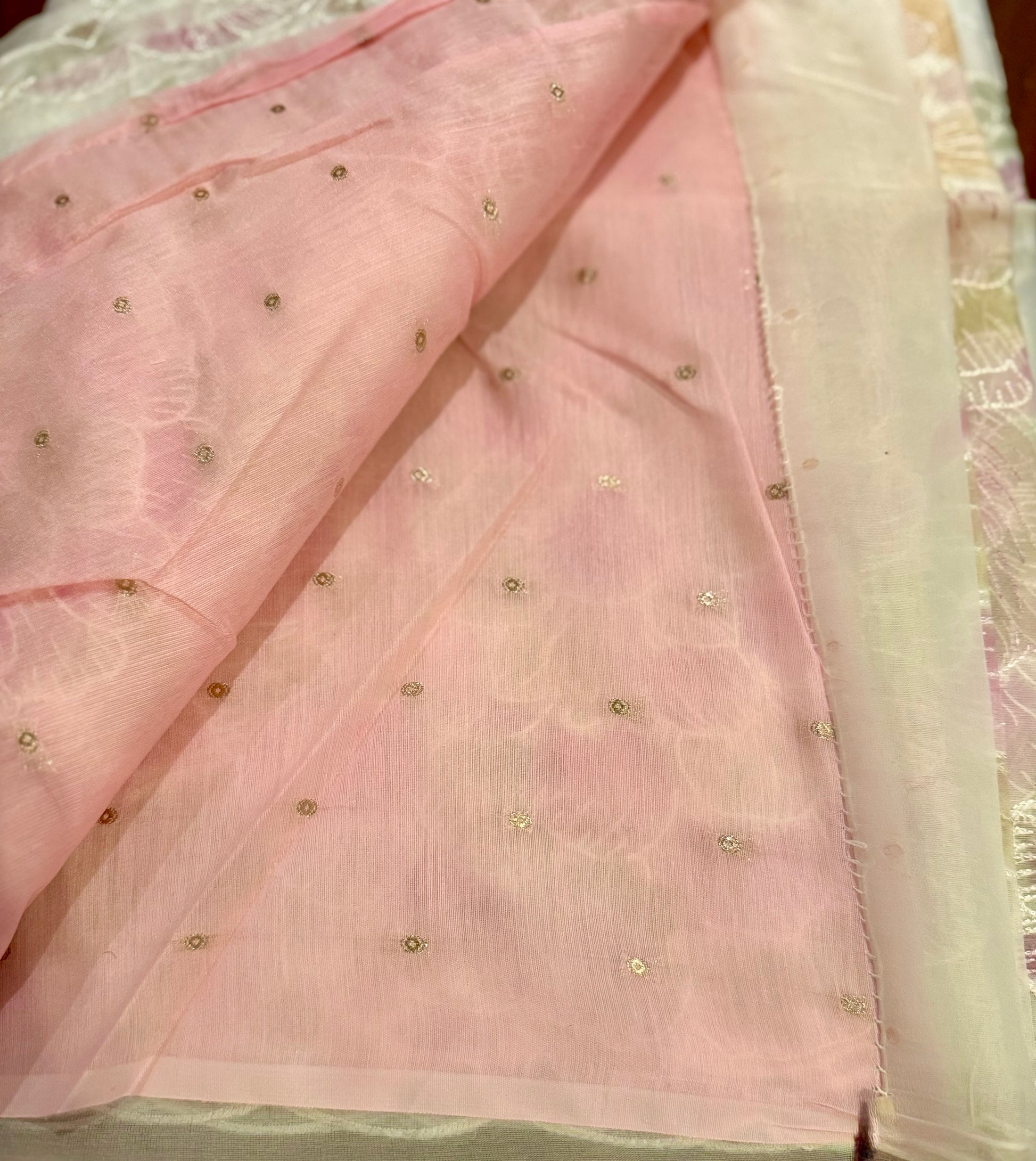 - Comes with a matching pink cotton blouse pieceĀ gold buttis
